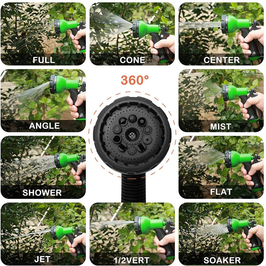 • فوهة خرطوم الحديقة القابلة للتمدد توفر 8 وظائف لرش الماء، ومقبضها المطاطي سهل الإمساك ومضاد للانزلاق. خرطوم الحديقة الممتد له استخدامات متعددة، مثل تنظيف السيارات، والبستنة، وتنظيف الحدائق، واستحمام الحيوانات الأليفة، إلخ.